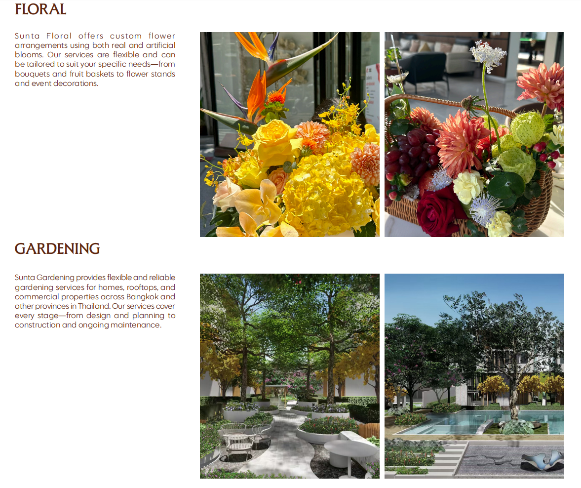Sunta.gardens specializes in floral and gardens, providing bouquets, floral baskets, stands, fruit arrangements, and event florals. We also offer gardening and greening services for luxury villas, premium apartments, and restaurants.